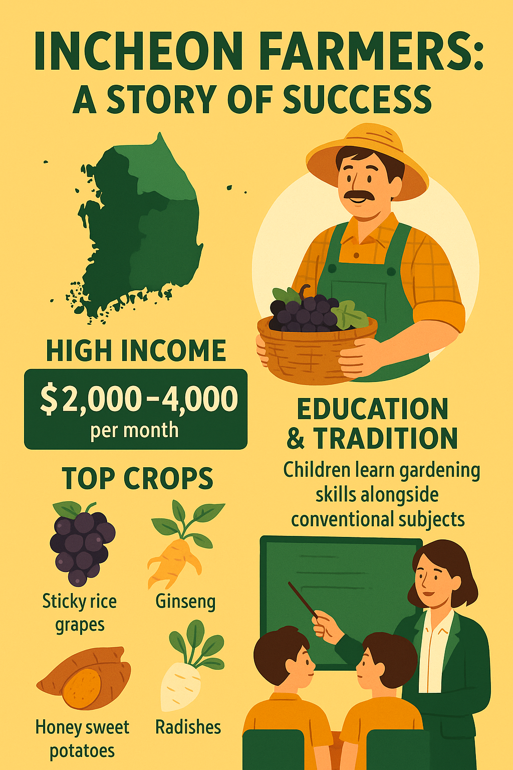 Incheon đã chứng minh rằng: làm nông không hề nghèo nếu có chiến lược bài bản. Đầu tư đúng cây, áp dụng công nghệ mới, giữ vững chất riêng – đó là chìa khóa cho nông dân thời hiện đại.